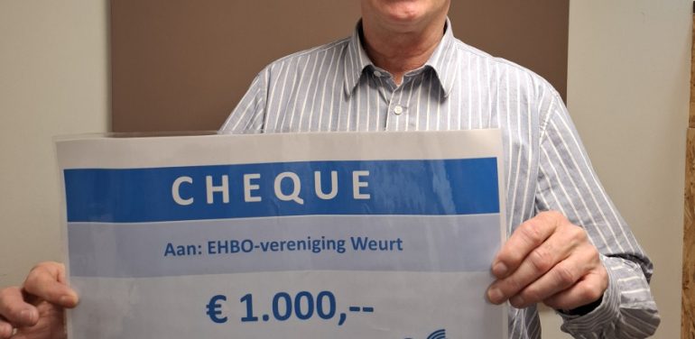 We werden uitgenodigd om een Cheque in ontvangst te nemen.